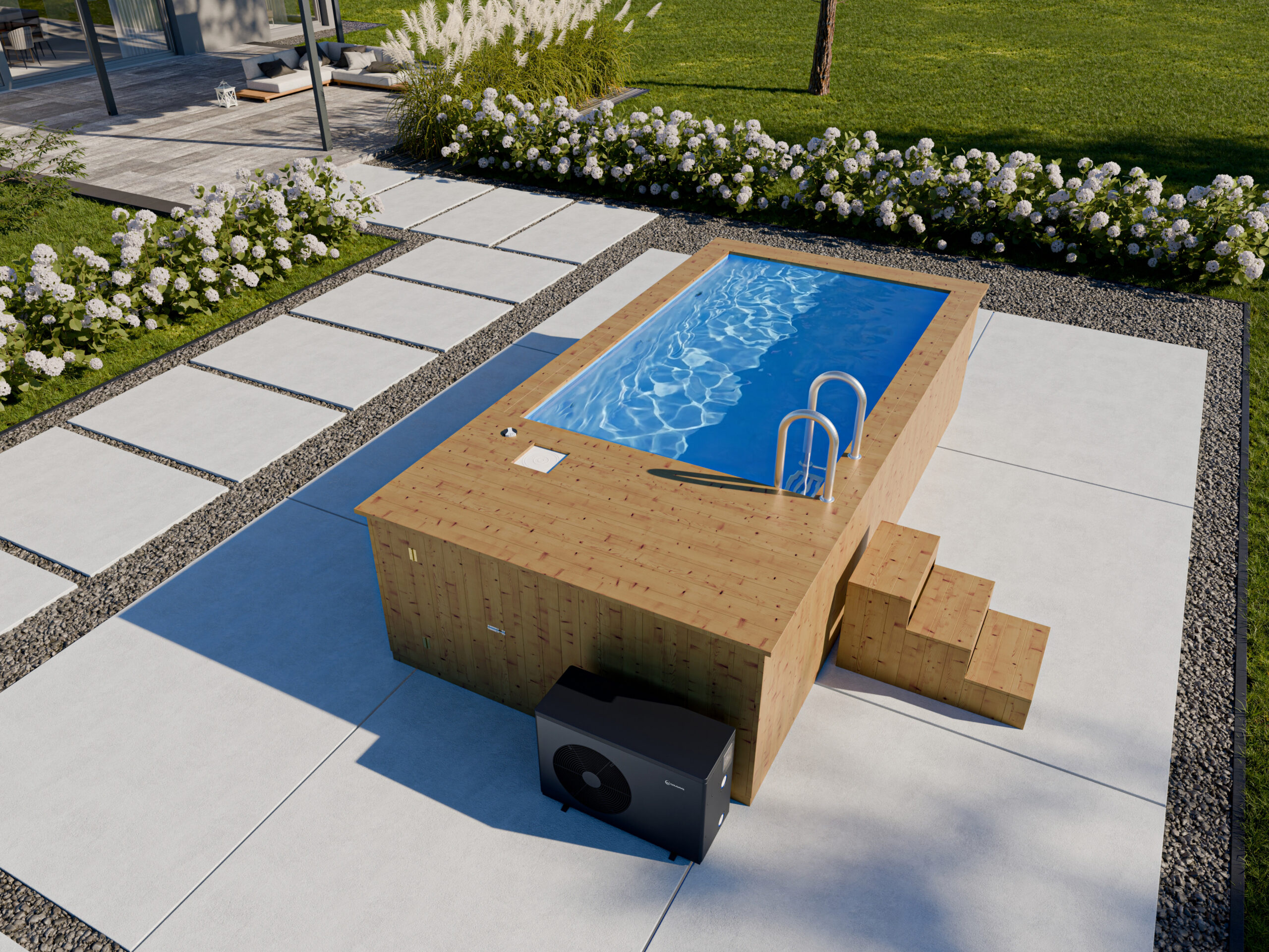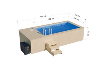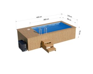 Pevná konštrukcia bazéna zaručuje jeho trvácnosť a odolnosť na niekoľko sezón. Dodatočne je pre maximálnu spokojnosť možné bazén vybaviť pecou na drevo alebo tepelným čerpadlom 4 kW. To vám umožní nastaviť teplotu vody podľa vašich predstáv.