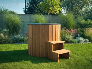 Ochladzovacia kaďa umiestnená v záhrade bude skvelým doplnkom sauny alebo klasickej záhradnej kade. Vďaka svojim kompaktným rozmerom a prírodnému vzhľadu sa dokonale hodí do moderných aj rustikálnych priestorov.