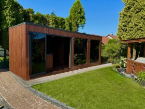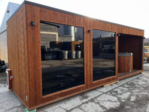 - Fínska sauna s predsieňou a zabudovanou terasou
