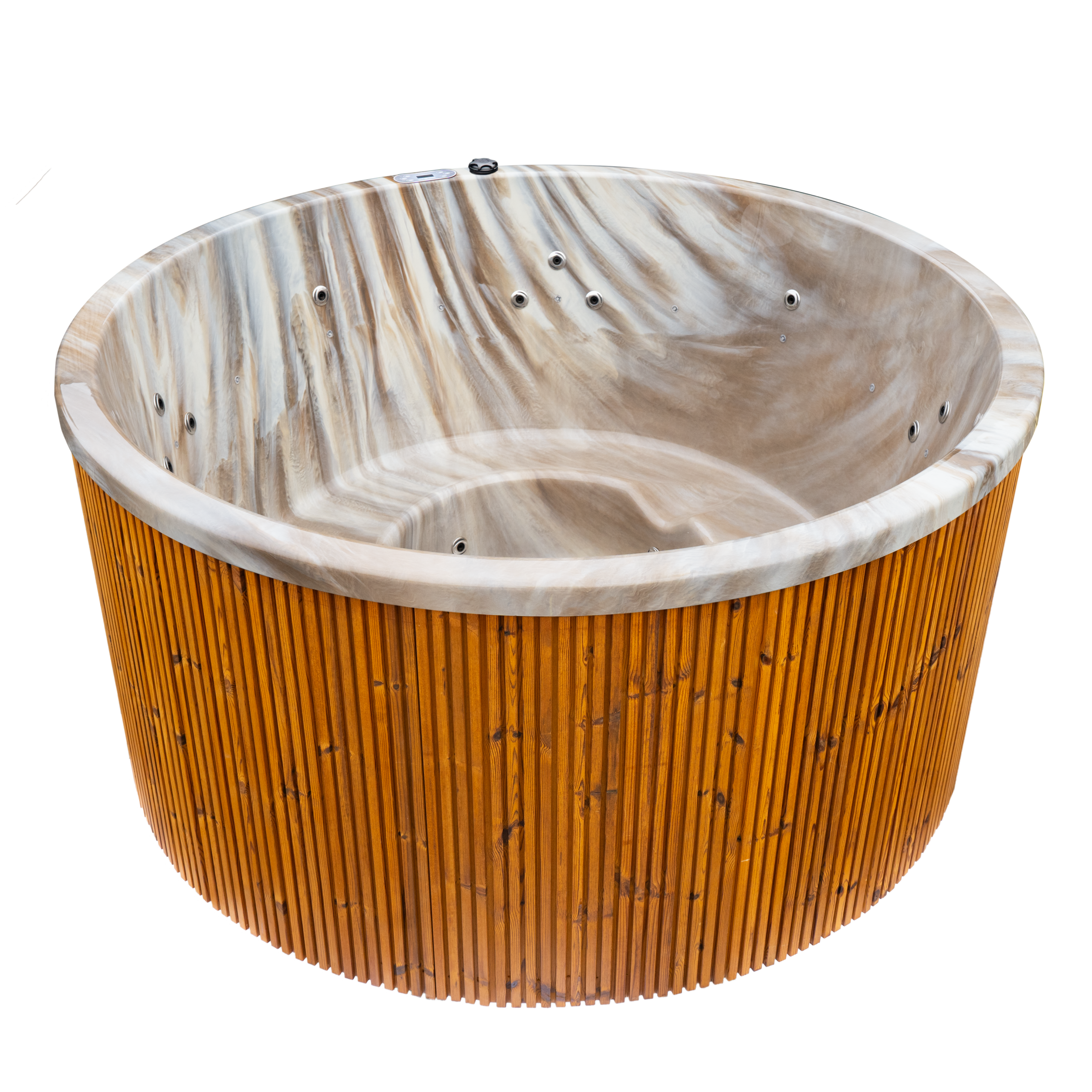 Ponúkame štýlové vonkajšie povrchové úpravy prispôsobené vašej záhrade: moderné a bezúdržbové kompozitné alebo prírodné, tepelne upravené drevo (termodrevo). Obe varianty sú vysoko odolné voči meniacim sa poveternostným podmienkam a dodávajú kúpeli SPA luxusný charakter.