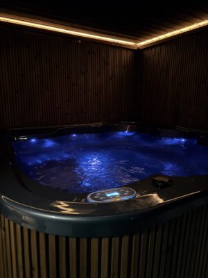 Doplnkové LED bodové osvetlenie vytvára relaxačnú atmosféru, vďaka čomu si môžete vírivku užívať aj po zotmení.