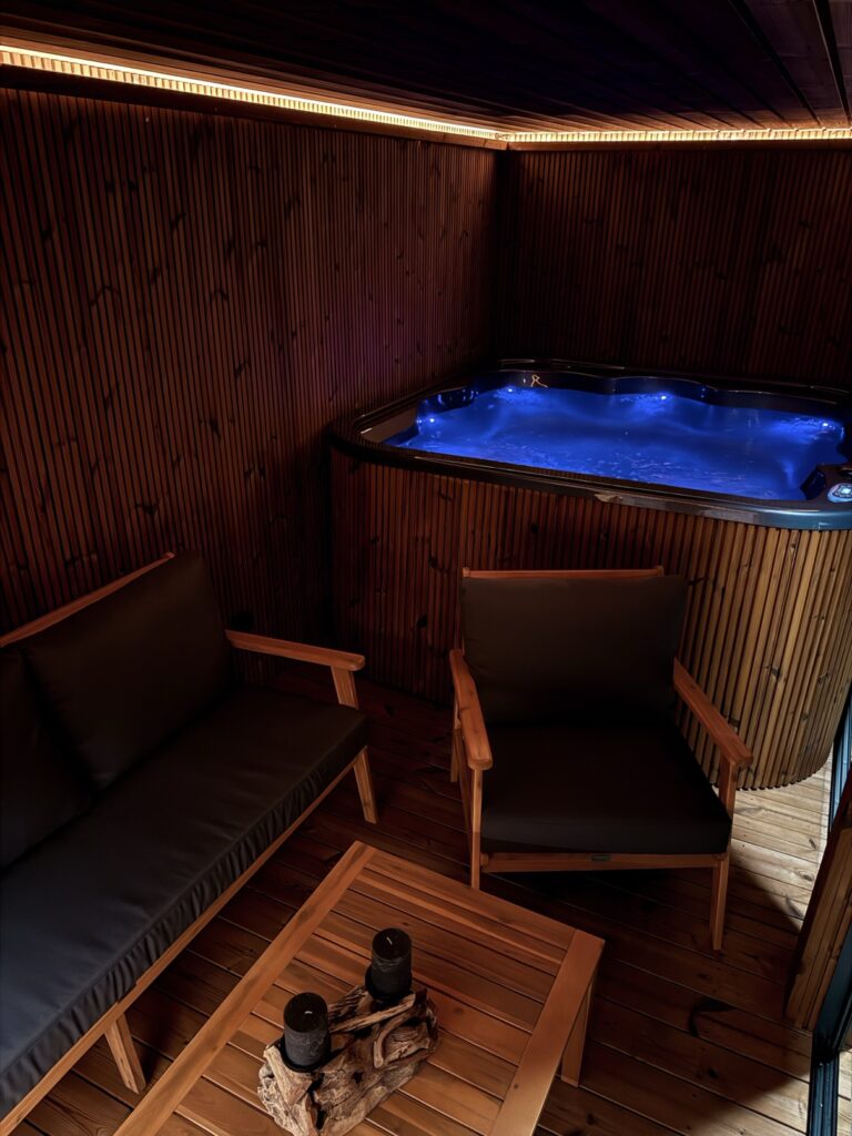Presklené steny, teplé LED osvetlenie a prírodné materiály robia každý moment strávený v altánku výnimočným. Je to priestor, v ktorom môžete naozaj spomaliť.